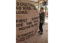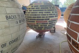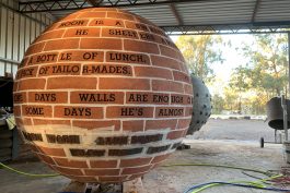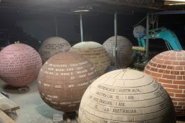 Alex and his team in Australia have completed production on Gordon's latest commission 'Down to Earth'. The artwork to be sited at St Peters Interchange parkland in Sydney is a series of typographic brick spheres with texts from eminent Australian writers, poets and lyricists.