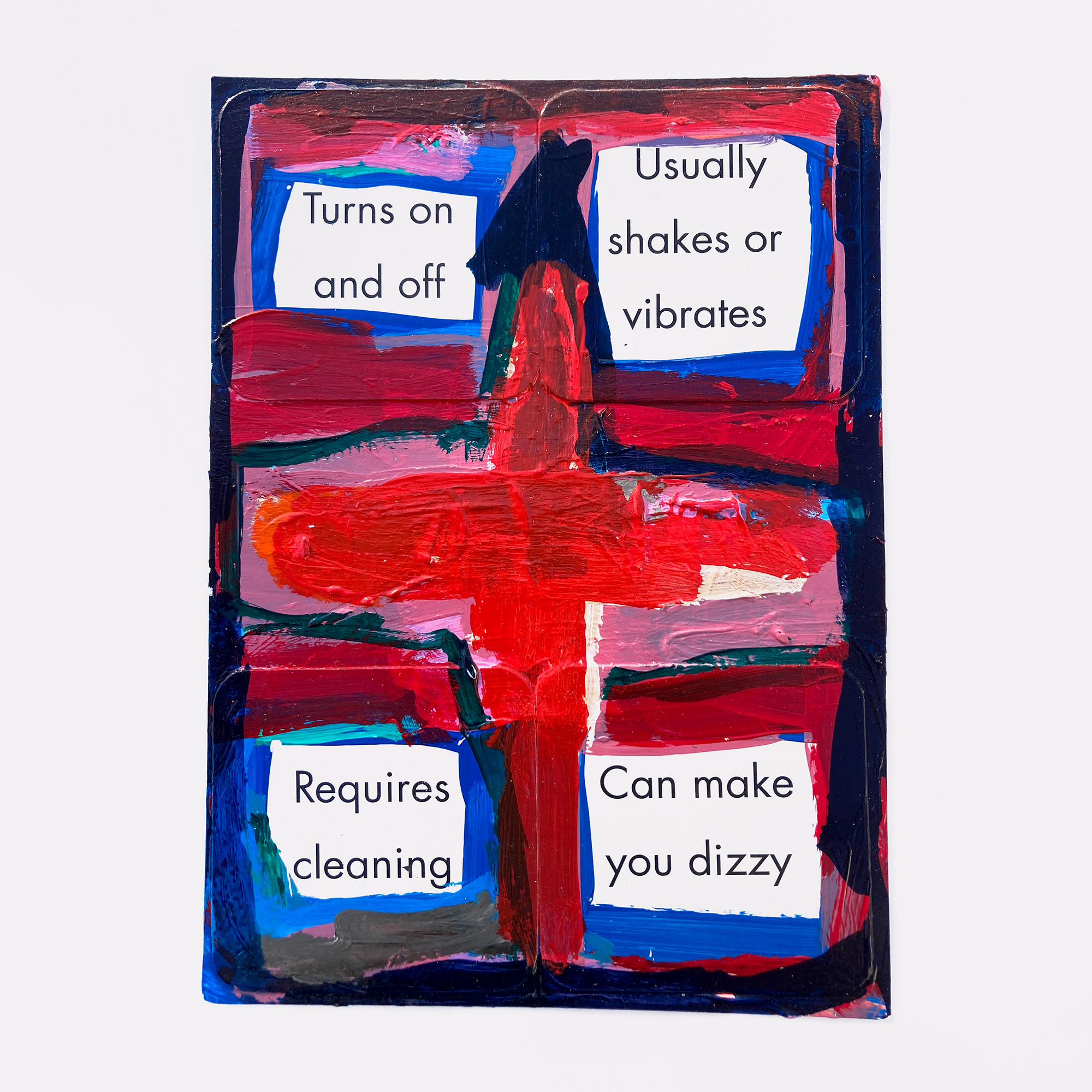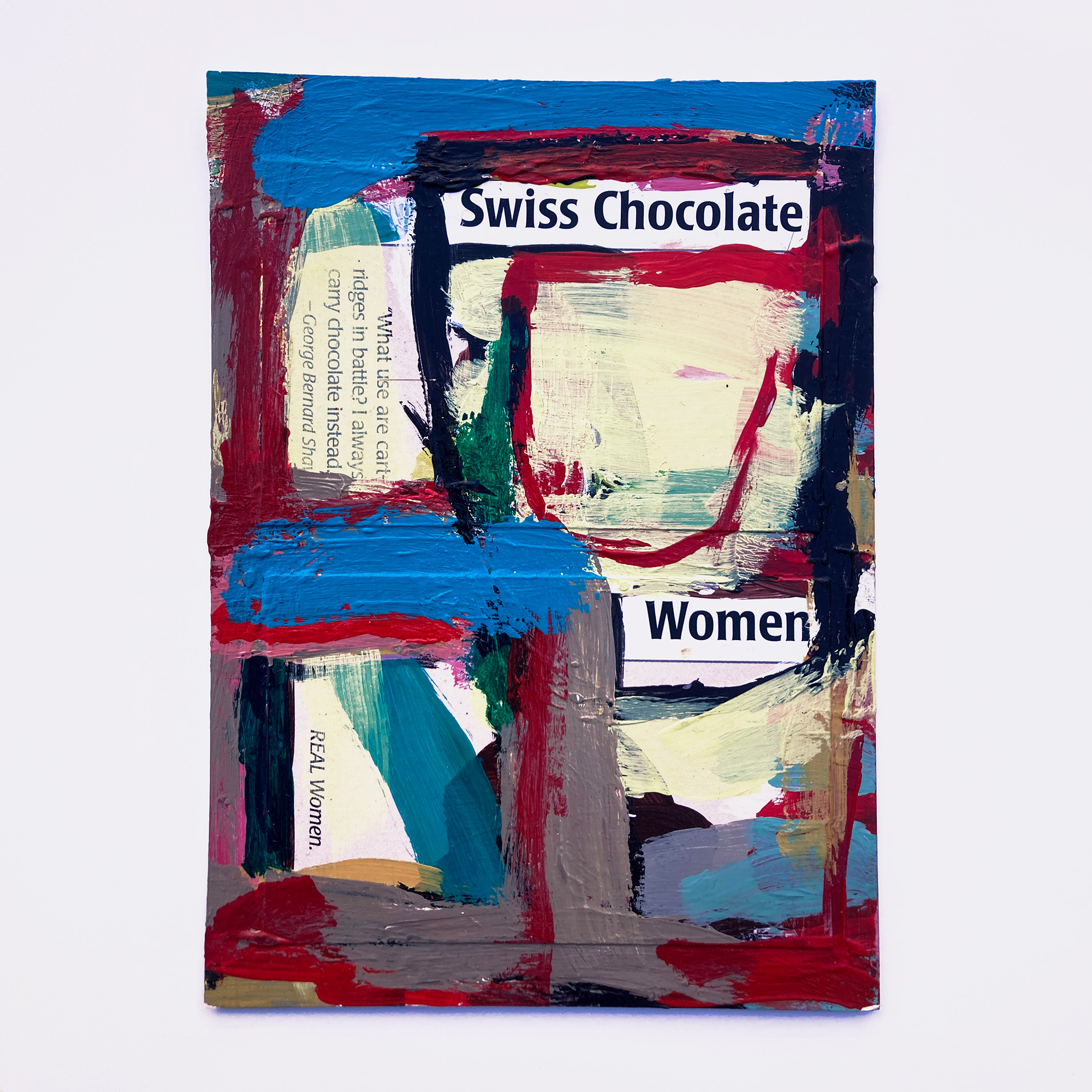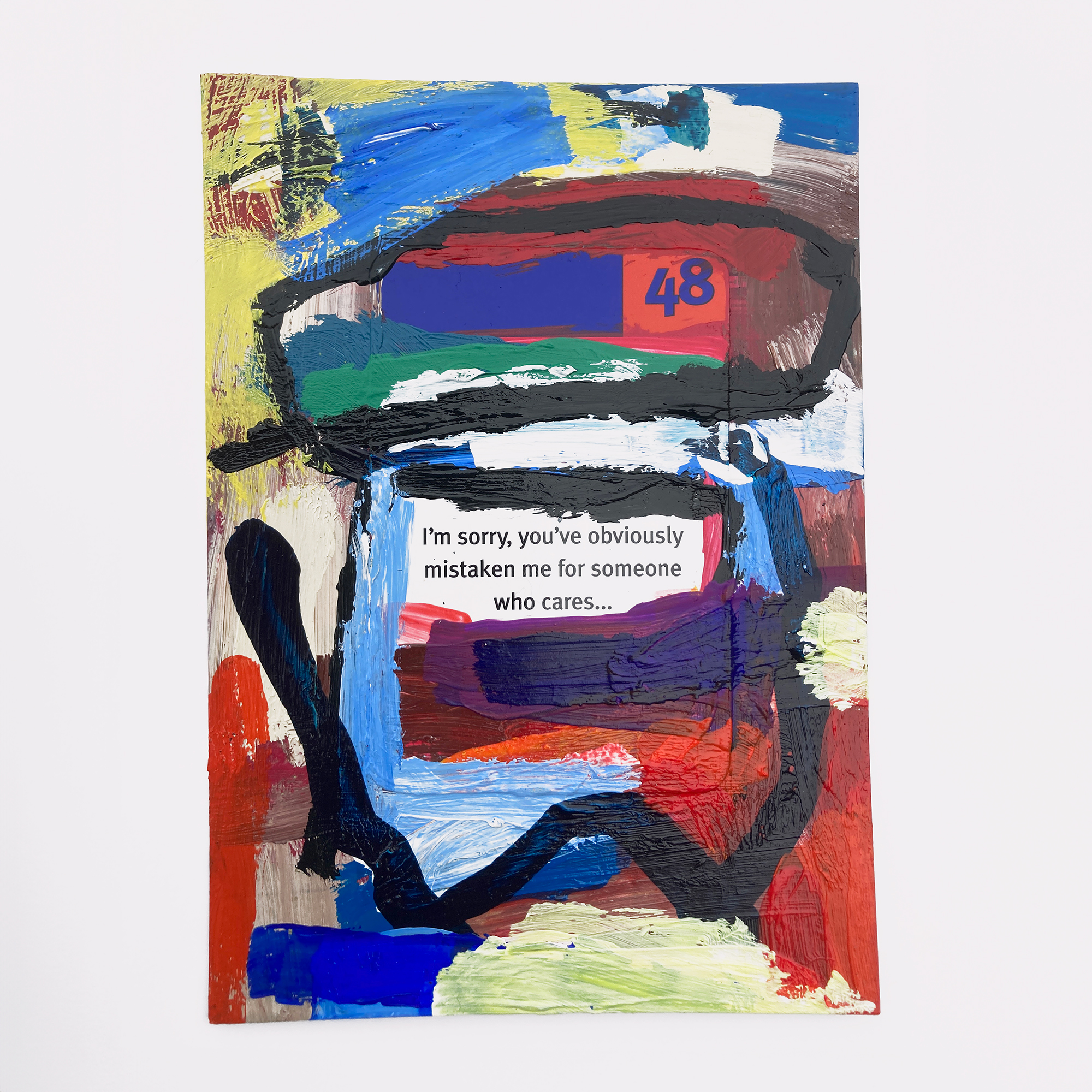 Mostly re-purposing pre-used postcards as a canvas, they combine all manner of found ephemera and printed detritus with painted forms, framing and magnifying the written word.